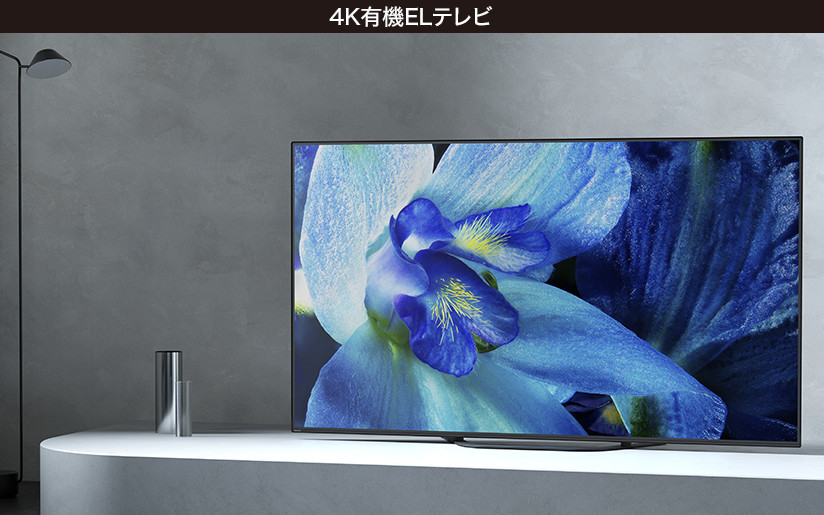 黒の背景が際立つ有機ELテレビ(左)と