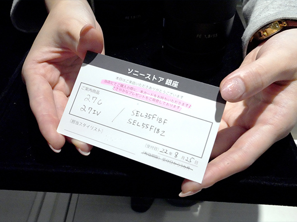 試したカメラやレンズの情報は、最後カードにメモして渡してもらえるので、家に帰ってから検討する時も安心です