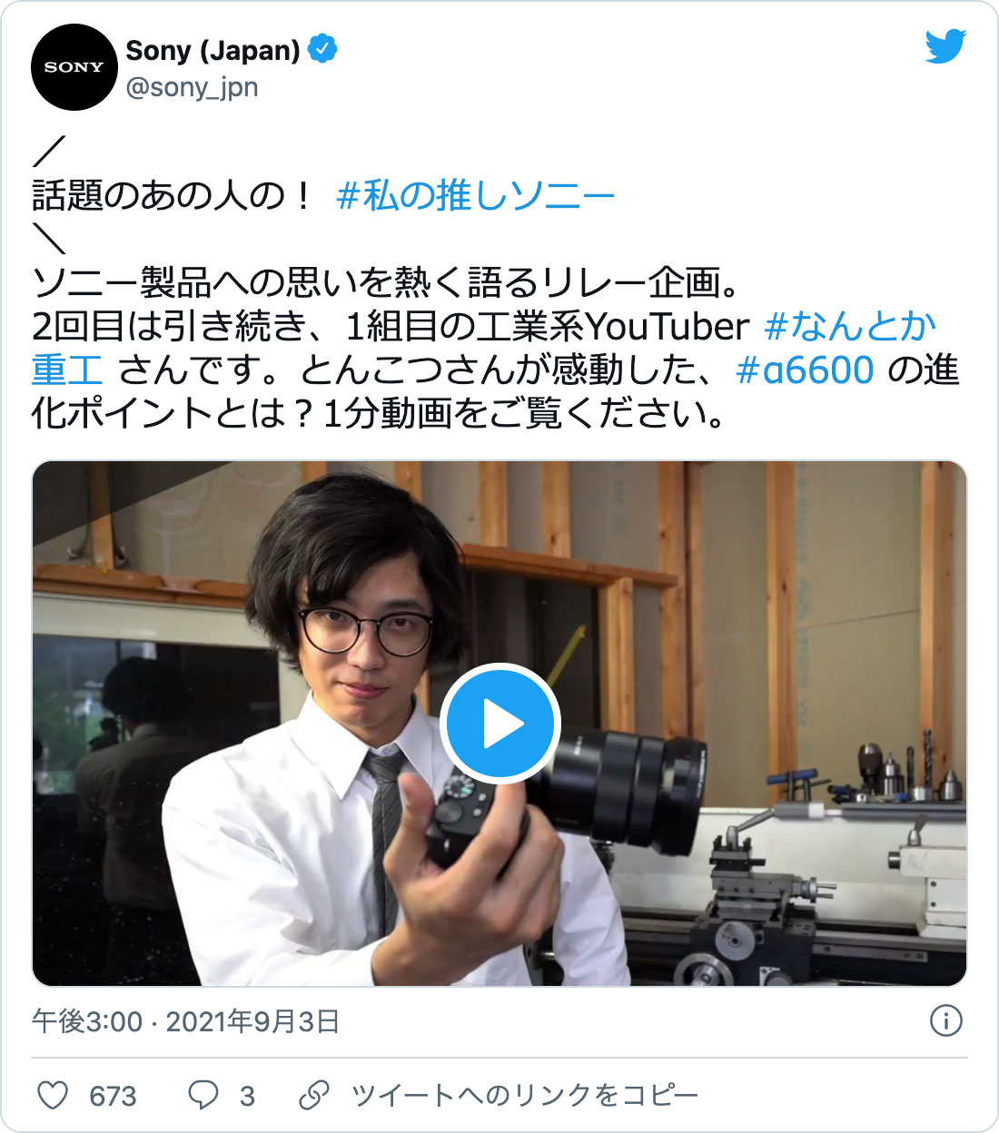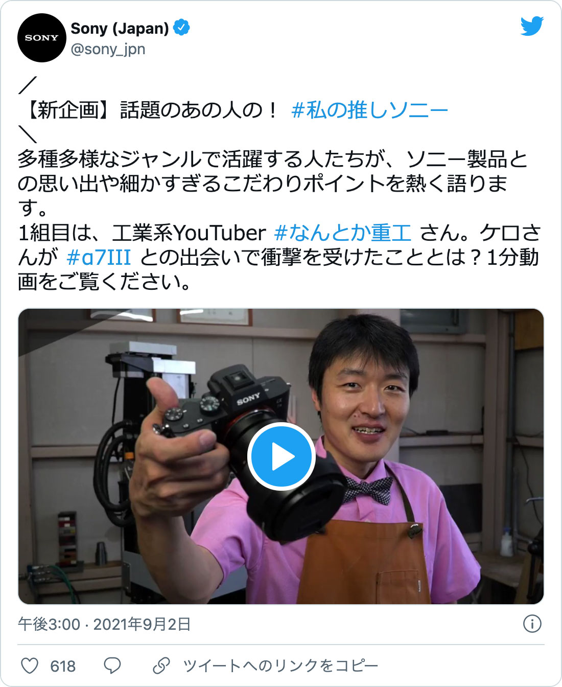 1組目は、工業系YouTuber #なんとか重工 さん。ケロさんが #α7III との出会いで衝撃を受けたこととは?1分動画をご覧ください。 pic.twitter.com/5n7kdFQocf