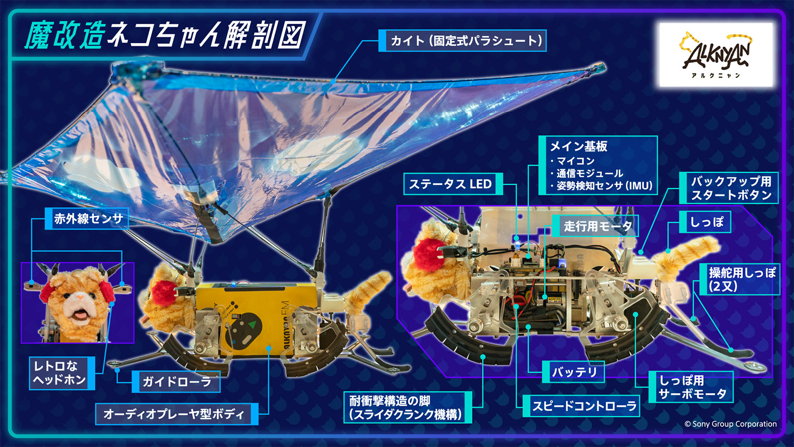 「ネコちゃん落下25m走」に出場したSニーのモンスターは、「ALKNYAN(アルクニャン)」と名付けられました。まずは、ALKNYANの仕組みについてチームリーダーの田中が解説します。
