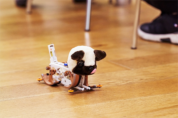 「それよりも、うまく歩いてくれないことが問題でした。足の形が決まるまでは3Dプリンターで製作していましたが、3Dプリンターでつくったものは落下の衝撃に弱いので、まずは走行実験を繰り返して一日の最後に落としては壊れるを繰り返しました」(内山)