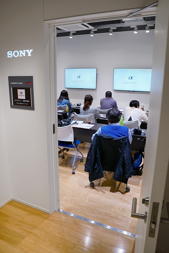 今回、受講するためにやって来たのはソニーショールーム/ソニーストア 銀座。GINZA PLACEの4階から6階までがソニーストアになっており、αアカデミーの講座は4階にあるコミュニティルームで受けることができます。同じフロアにはαとレンズが揃っているので、開講までの待ち時間に新しいαや気になるレンズを試すこともできます。