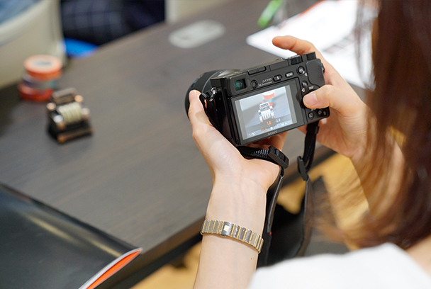後半の講座では、まさに写真の基礎となる「露出」や「絞り」、「シャッタースピード」などを学んでいきます。特に「絞り」と「シャッタースピード」の関係を学ぶパートでは、実際に試し撮りして効果を確認。絞りの値を変えると、どのように背景がぼけるのかが分かり、小物を使って夢中で撮影してしまいました。右下の写真では、きれいに背景がぼけているのが分かるでしょうか。