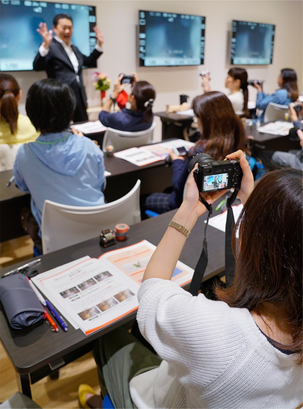 今回の講座は、基本的にテキストにそって進んでいくのですが、モニターにはテキストの情報を補足する資料も映し出され、それらは写真に撮って持ち帰ってもいいとのこと。これなら家に帰ってからも講座の内容を思い出してしっかり復習できます。