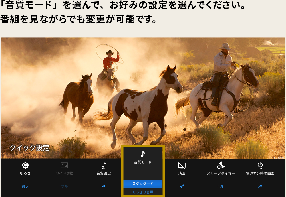 ブラビアなら、音質モード機能を活用することで、