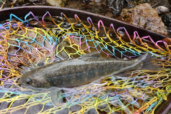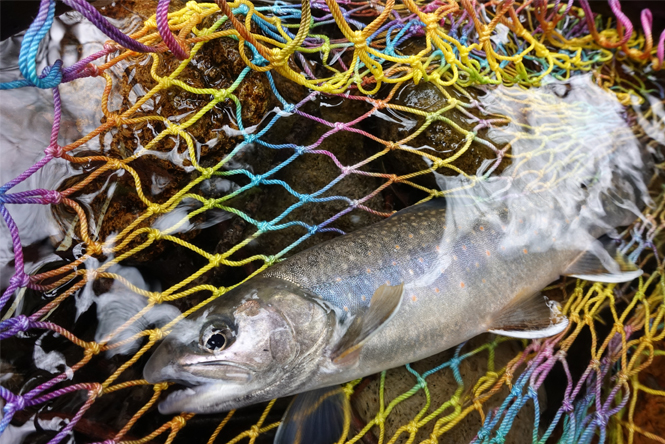 「オリジナルブランドのSOUTH2 WEST8では、釣りのためのウエア類はもちろん、釣り具メーカーとコラボレーションしてテンカラ用の竿も作っています。そうしたアイテムの使い勝手を、実際にフィールドで試してみることも、この旅の目的のひとつ。今回目指したのは石狩川の上流、層雲峡でした。オショロコマやニジマスなど、釣ったばかりの魚を撮ってみると、シャッタースピードの速さが確かめられますね。ただ、釣りをしながら撮影も行うとなると、集中力が続かなくて、なかなか難しかったのですが(笑)」