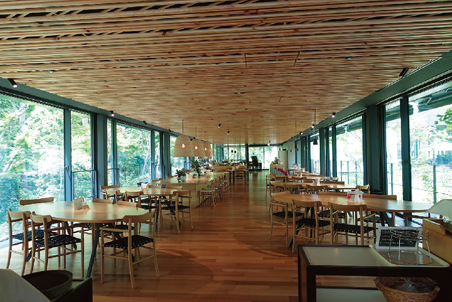 「建築家は、自分が携わった仕事の完成形が手元に残らないだけに、写真で残しておくことが大切。そうした建築写真として、しっかり残したいときには、視点の位置や高さがとても気になります。プロのカメラマンの方に撮影をお願いする際にも、まずは1200mmくらいの高さから試してもらって、徐々に上げていってもらうとか。実際にその空間を訪れたときの視界や感覚を再現するために、ベストなところを探るようにしています。また、その建築がどんな意図で作られたものなのか、ひと目でわかる記録であることも重要ですね。上の2枚の写真は、山梨県の小淵沢町にある『女神の森 セントラルガーデン』で撮ったもの。ダイニングカフェやホールを併設した複合施設で、私が設計を担当させていただきました」