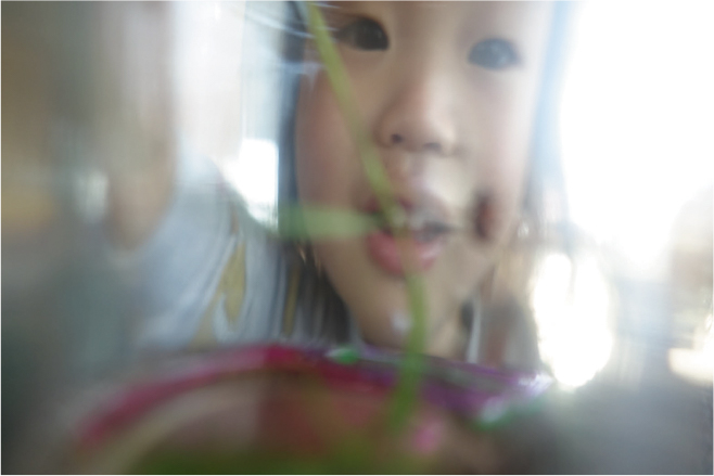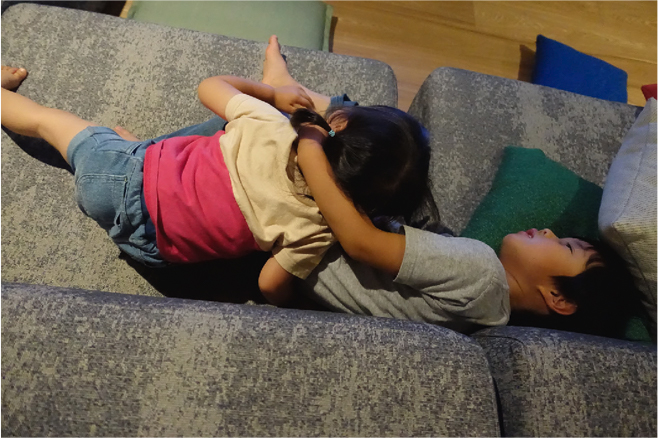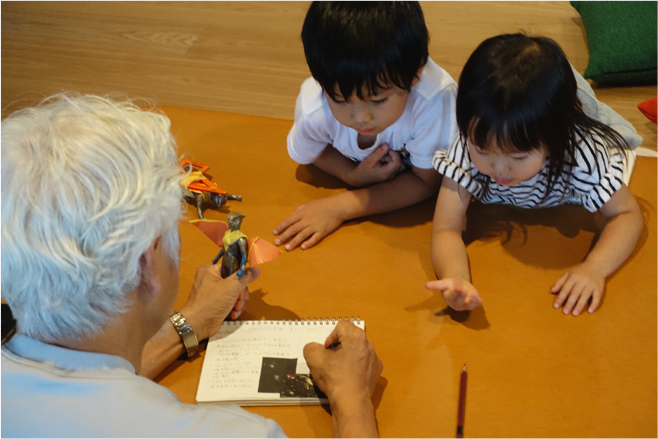 「私の父が、自宅で孫たちに授業をしている様子も撮ってみました。おじいちゃんの学校なので、『G学校』。Grandfatherの“G”と“じいじ”をかけて、そう呼んでいます(笑)。このあたりは、とくに普段の家族の表情が撮れているかもしれません。先にも触れましたが、自宅はワンルームのようなつくりにリフォームしていて、いつでも家族の姿が目に入ります。私にとってはこうした空間こそ、家事も効率的にできる、働く女性のための空間です。見えるところにゴミ箱は置かないとか、自分なりのルールもあるのですが、そうした小さな工夫の積み重ねで、生活が楽しくなる。そういう空間の使い方も、写真で記録してみると面白いですね」