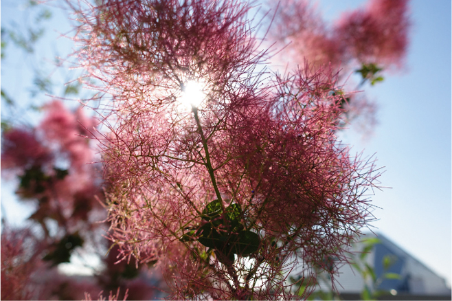 「今回はほとんどオートモードで撮影をしているのですが、なかでもよく使ったのは、背景のぼけ具合や明るさを調整できる機能。コントロールホイールの下部を押すだけで操作画面がすぐに表示されるのも、使いやすくて便利でした。テラスに植えたスモークツリーがちょうどきれいな時期だったので、近づいて撮ってみたり、子どもたちの描いた絵や、いつも遊んでいるおもちゃをあらためて撮ってみたり、いろいろ試してみるのも楽しかった。普段目にしているものも、よりドラマチックに写せると思います」