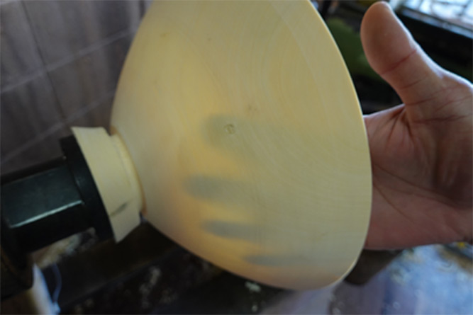 「普段作業している工房で、いろいろと撮ってみました。最初のほうの写真は、外側を削り終えたので、次に内側を削っているところです。こうしてボウル状のものをつくる場合には、丸太の状態からチェーンソーでカットしたブロックを、木工旋盤と専用の道具を使って削り上げて、そのあとに乾燥させます。僕のつくる作品は比較的薄いので、だいたい2週間くらいで乾くのですが、乾燥すると歪みが生じたり、自立しなくなったりする。そうした部分に修正を加えて、全体に手で細かなやすりをかけてから、蜜蝋を塗って完成させます。ここ何年もスマートフォンで撮ることばかりでしたが、身近なものもこうしてデジカメで撮ってみると、やっぱりきれいに写るので、写真を撮ることそのものに興味が湧いてきますね」