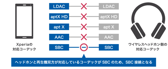 Xperiaとヘッドホンの対応コーデックの例