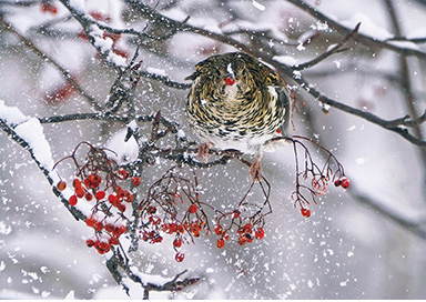 冬の厳しい寒さの中でたくましく生きるトラツグミの姿を表現