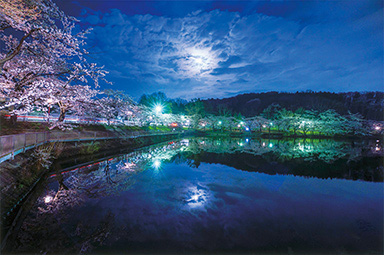 印象的な雲からときどき顔を出す朧月が池に映る姿と、夜桜のピンク色が織りなす幻想的な光景に出会い、それを写し止めようと務めました。ホワイトバランスを「蛍光灯」モードにして、空の色と桜の色のバランスが一番良く見えるようにしています。長年ソニーのミラーレスカメラを使っていますが、それはEVFが見やすいから。カメラの設定を確認しながら撮れるので、自分の思い通りのイメージで撮ることができます。