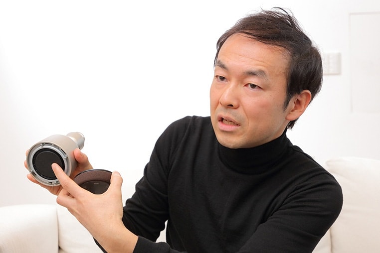 鈴木:材料選びもそうなんですが、『LSPX-S2』では「高さ」についても非常に凝りまして。最後はミリ単位で調整があったんですけど、それこそ毎日のようにテーブルの真ん中に置いてみて、「もう5ミリ低くしてみようか」とか(笑)。音質と見た目とのバランスを見ながら、そういった細かな試行錯誤を、本当に何度も何度も繰り返しました。