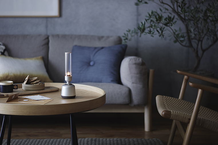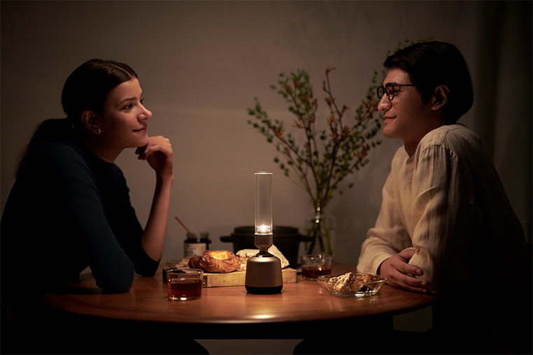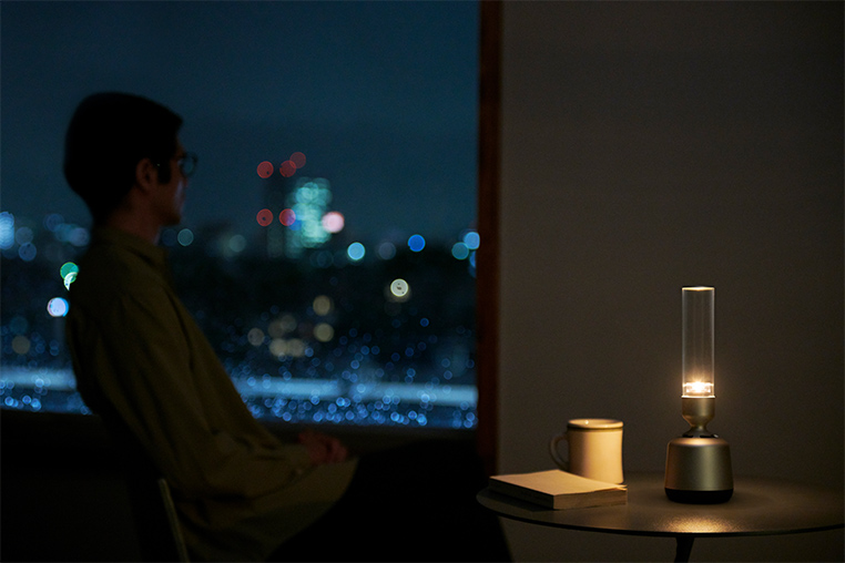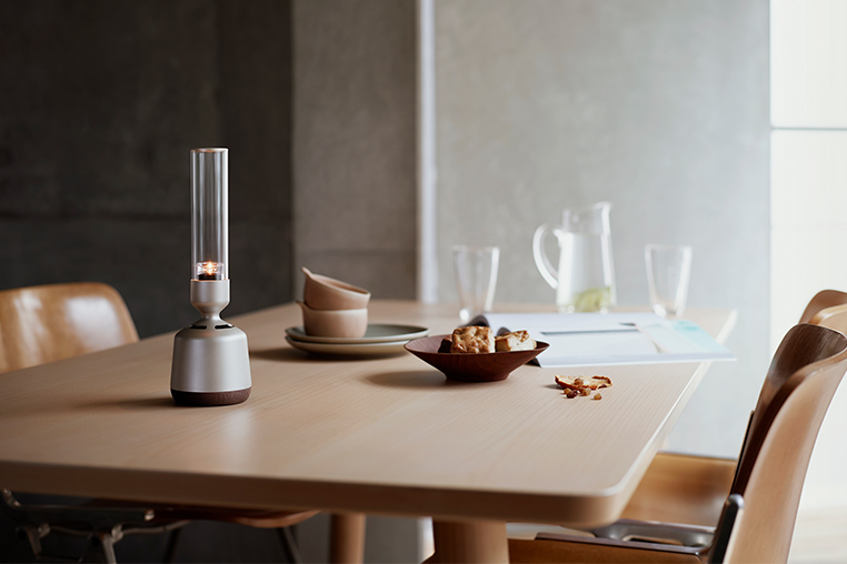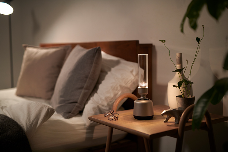 保田:この透明なガラス管から奏でられるクリアな音を一度聴いてご体感いただきたいですね。あとはぜひ、ご自宅の中でこれを使う「お気に入りの場所・時間」を見つけていただきたいなと思っていて。ダイニングテーブルの他に、私はベッドサイドに置いて使うのも好きです。スリープタイマーがついているので、キャンドルライトモードの光を灯して音楽を聴きつつそのまま眠るというのもおすすめです。日常の中のちょっとした贅沢時間を作ってもらえると嬉しいですね。