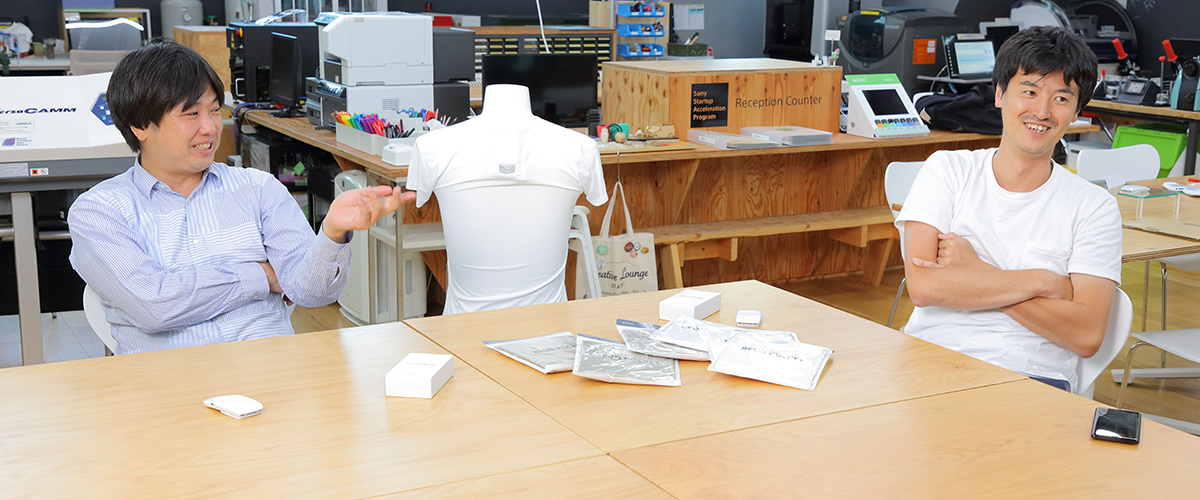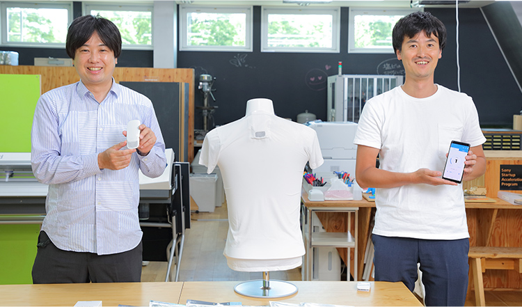 首もとに装着することで、夏は冷感を冬は温感をユーザーに与えてくれるインナーウェア装着型のウェアラブルサーモデバイス『REON POCKET(レオンポケット)』。これまでソニーがやっていなかった分野の製品であることに加え、ソニーの新規事業創出プログラム「SSAP(Sony Startup Acceleration Program)」のもと2019年夏に実施されたクラウドファンディングが総支援額6900万円という大きな支持を集めたことでも話題になりました。そしてこの夏、いよいよ正式な商品化が決定。早くも猛暑を感じさせる2020年の夏を『REON POCKET』がどのように変えていくのか。その発想の瞬間から今日に至るまでの歩みを2人のエンジニアが語ります。