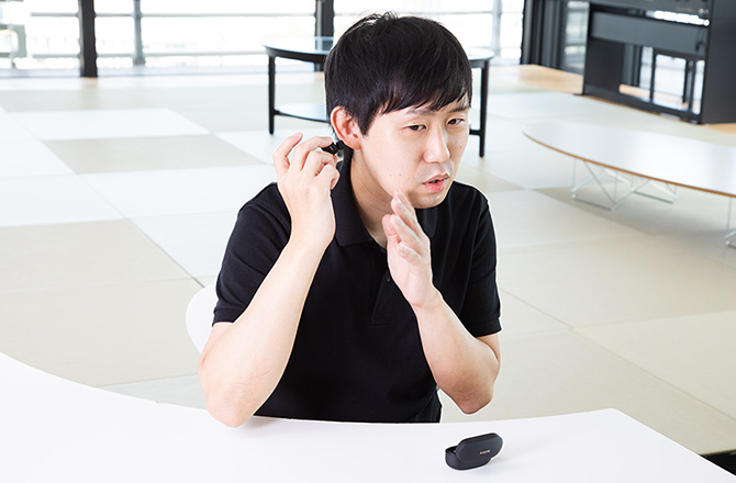 小澤:また、『WF-1000XM4』の新しい本体形状も充電ケースの小型化に一役買っています。耳から前に飛び出す部分が大きいとケースに無駄な空間が生まれてしまうのですが、『WF-1000XM4』は本体形状が耳の中に収まる形状に変わったことで、投影サイズが小さくなり、レイアウトを最適化することができました。