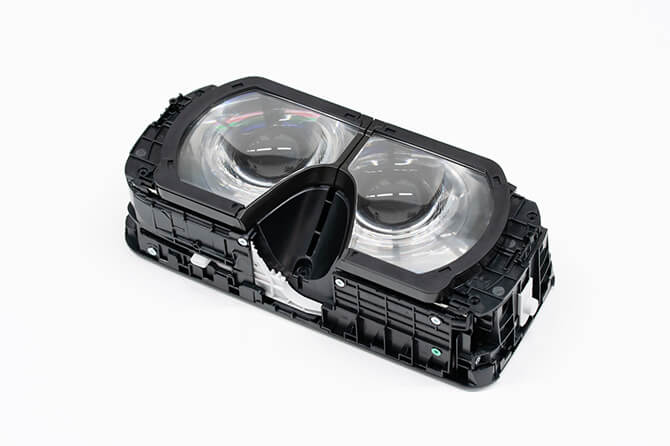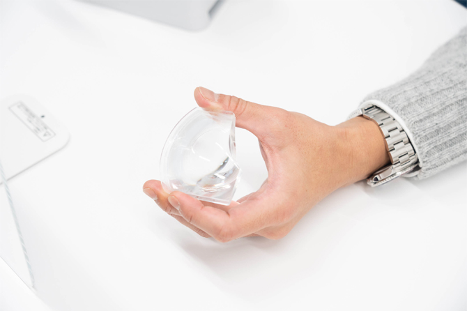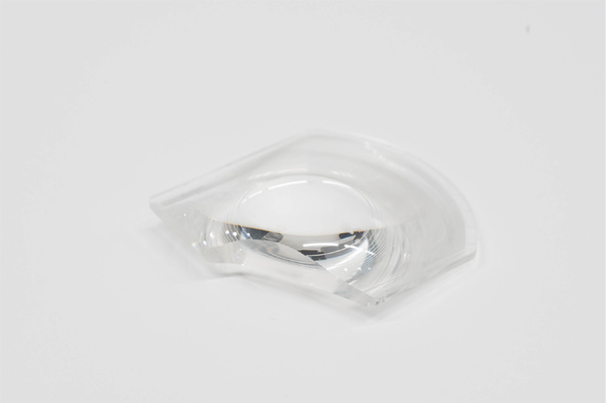 遠藤:設計もさることながら、この複雑な形状のレンズをどのように量産するかの検討が最もハードルが高かったですね。このレンズの素材はプラスティックで、射出成形という金型に樹脂を流しこんで成形する手法で製造しているのですが、これを歪みなく高い精度で成形するにはどうすればいいのか、そもそもフレネルレンズの複雑な形状を再現できる金型を作れるのかという問題がありました。