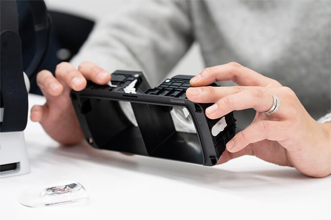 遠藤:レンズそのものではないのですが、フレーム部分の構造設計に苦労しました。『Xperia View』ではより多くのお客さまに快適にVR映像をお楽しみいただけるよう、レンズ間隔調整ができる機構が組み込まれているのですが、これが思った以上に複雑な機構になっていて、けっこうな数の部品を、公差(部品ごとの許容誤差)計算しながら成り立たせるのが大変でした。
