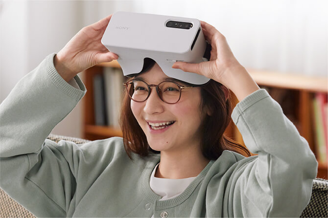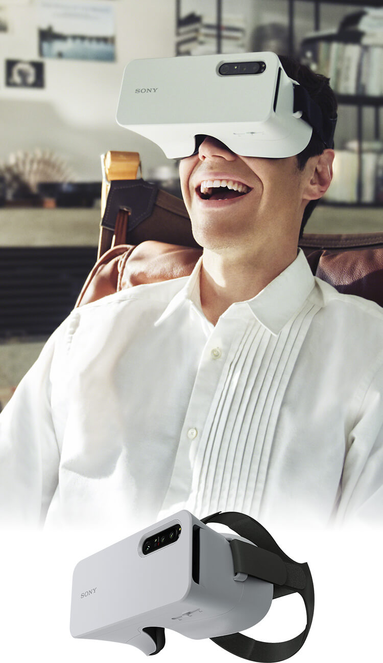天野:『Xperia View』は、Xperia専用のビジュアルヘッドセットです。『Xperia 1 III』および『Xperia 1 II』の約6.5インチ、21:9シネマワイド™ディスプレイを使って、手軽に高画質なVR体験を味わうことができます。