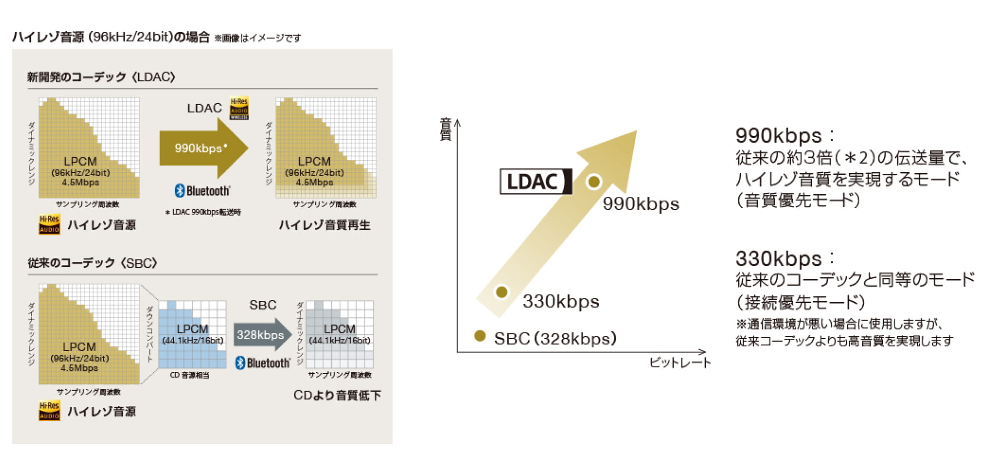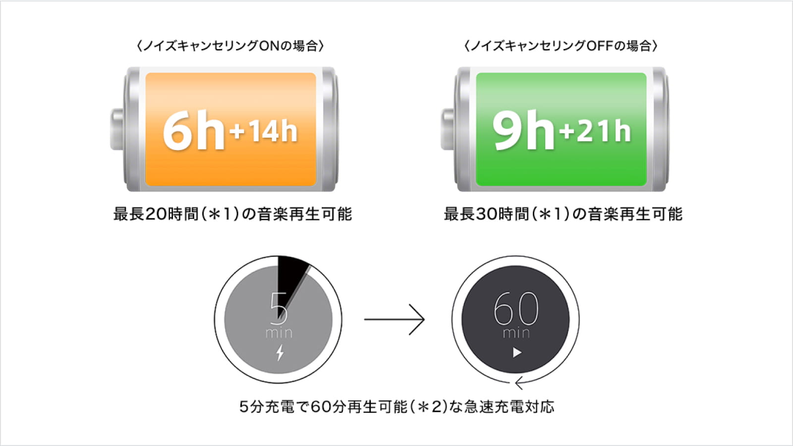 *1 ハイレゾワイヤレス再生(LDAC)を利用するにはAndroidスマートフォンやウォークマンなどLDACに対応した機器が必要です。また、WF-1000XM4でLDACを使用するにはスマートフォンアプリ「Headphones Connect」から操作が必要です。