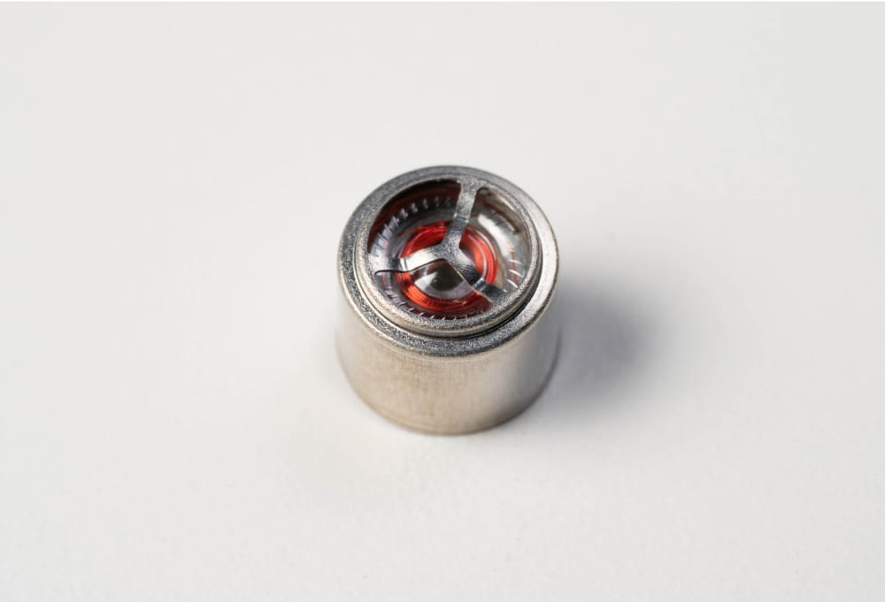 吉良:このドライバーユニットの内部には振動板という、電気信号を受けて音を生み出すパーツが配置されています。一般的に、振動板の径が小さいほど、低音の再生には不利です。スピーカーで充分な低音の再生を実現するには振動板のエッジ部分を柔軟にしてこの振動板を動きやすくする必要があるのですが、これほど小さなサイズで充分な振幅を持たせるためには、エッジ部分の形状の最適化が重要でした。また、逆に高音域をしっかり鳴らしてハイレゾ再生を実現するためには中央のドーム部分を硬くする必要があります。この相反する条件を両立させるのが大変で、シミュレーションと試作を何度も繰り返して、理想的な形状にたどり着くことができました。