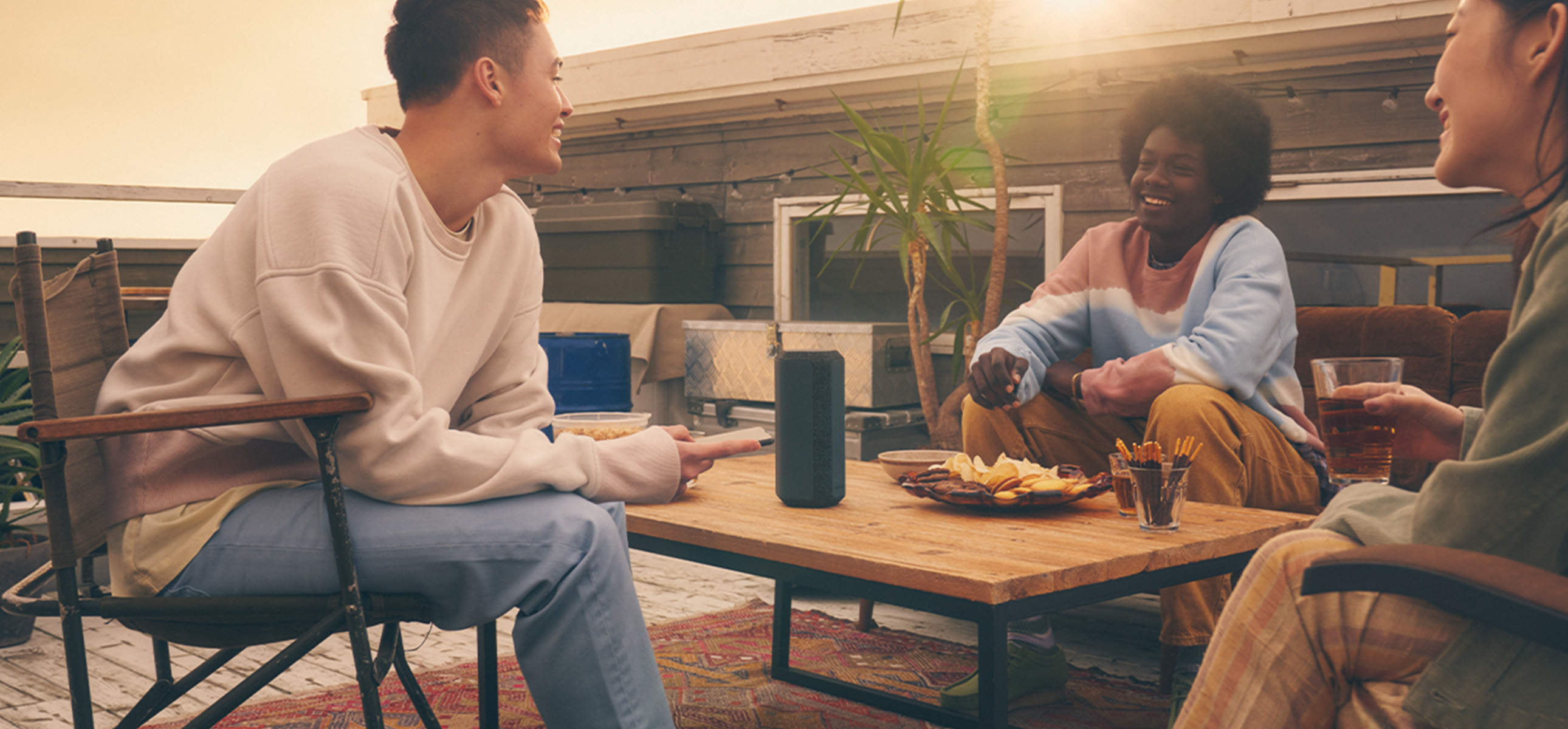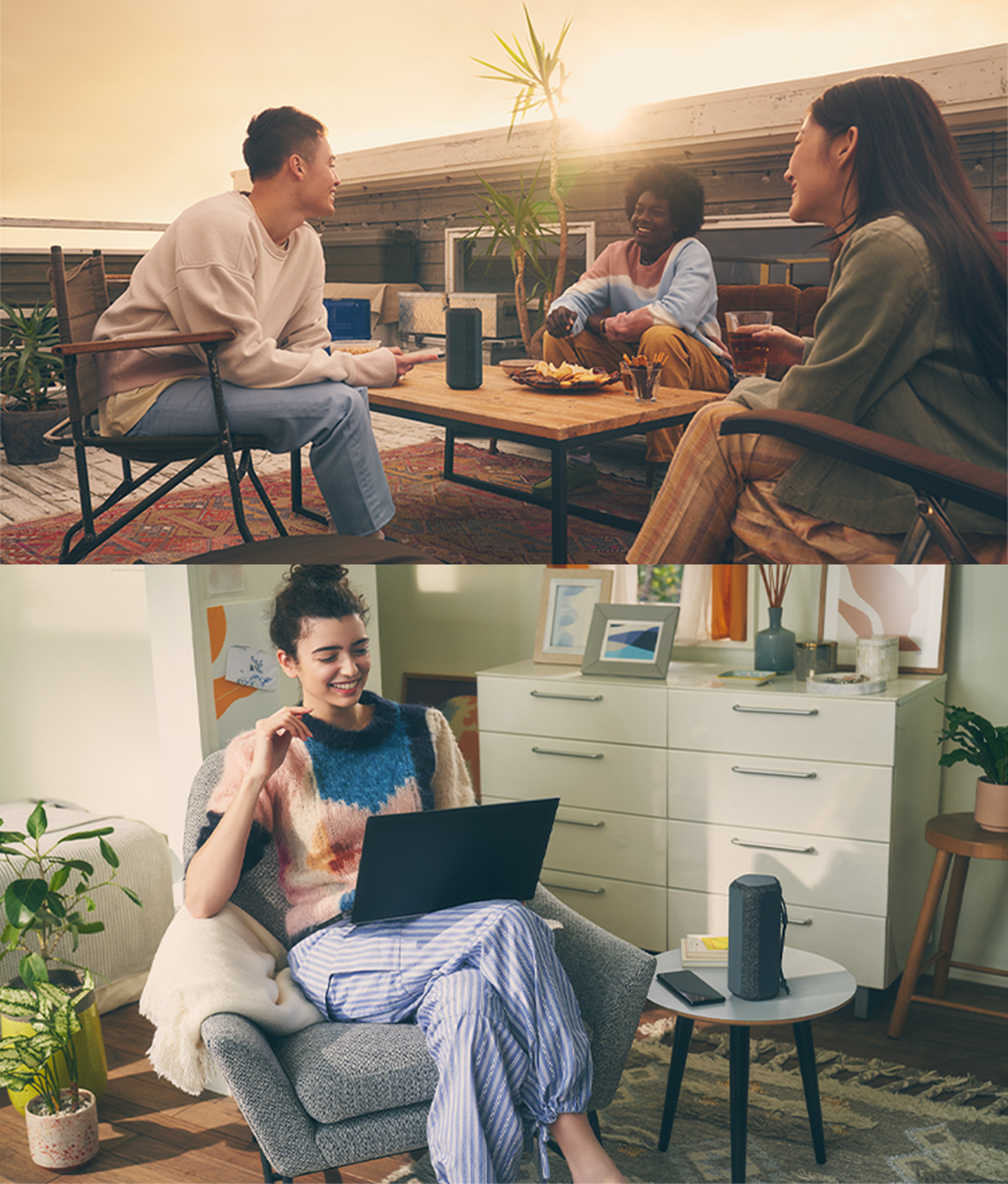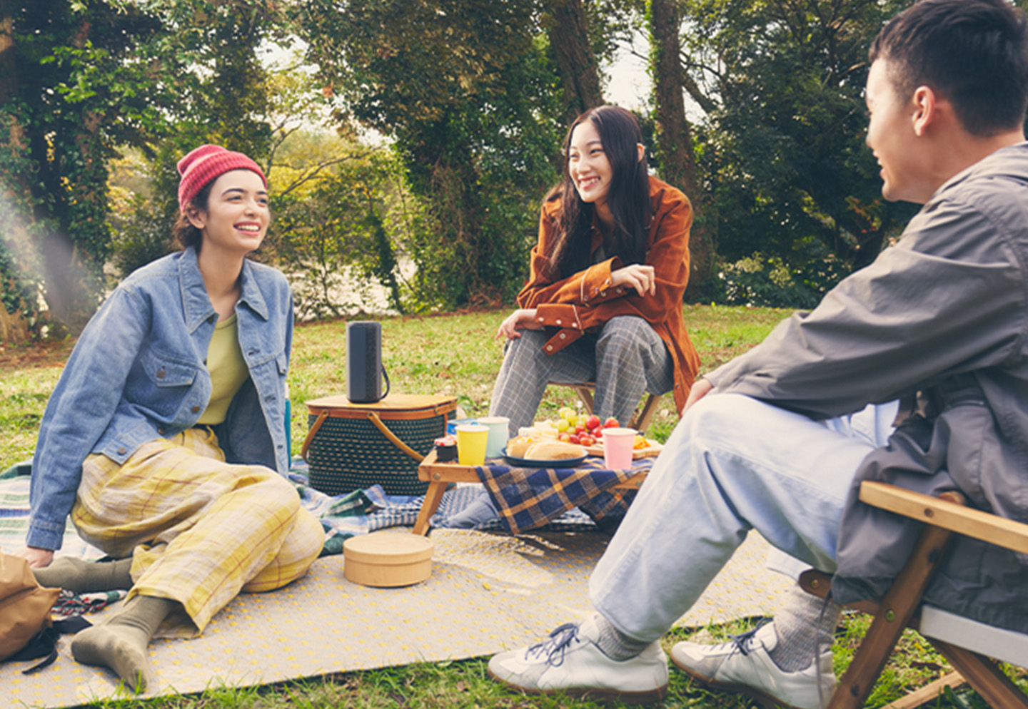 村尾:オンラインコミュニケーションへの対応を強化したことで、お気に入りの音楽を楽しみながら作業しつつ、リモート会議などのコミュニケーションもクリアな音質で快適に楽しめるようになりました。そして休日は家族や友人たちとアウトドアのレジャーへ。これ一台で仕事から遊びまで幅広くカバーできる製品です。ぜひ、さまざまなシチュエーションで活用してください。