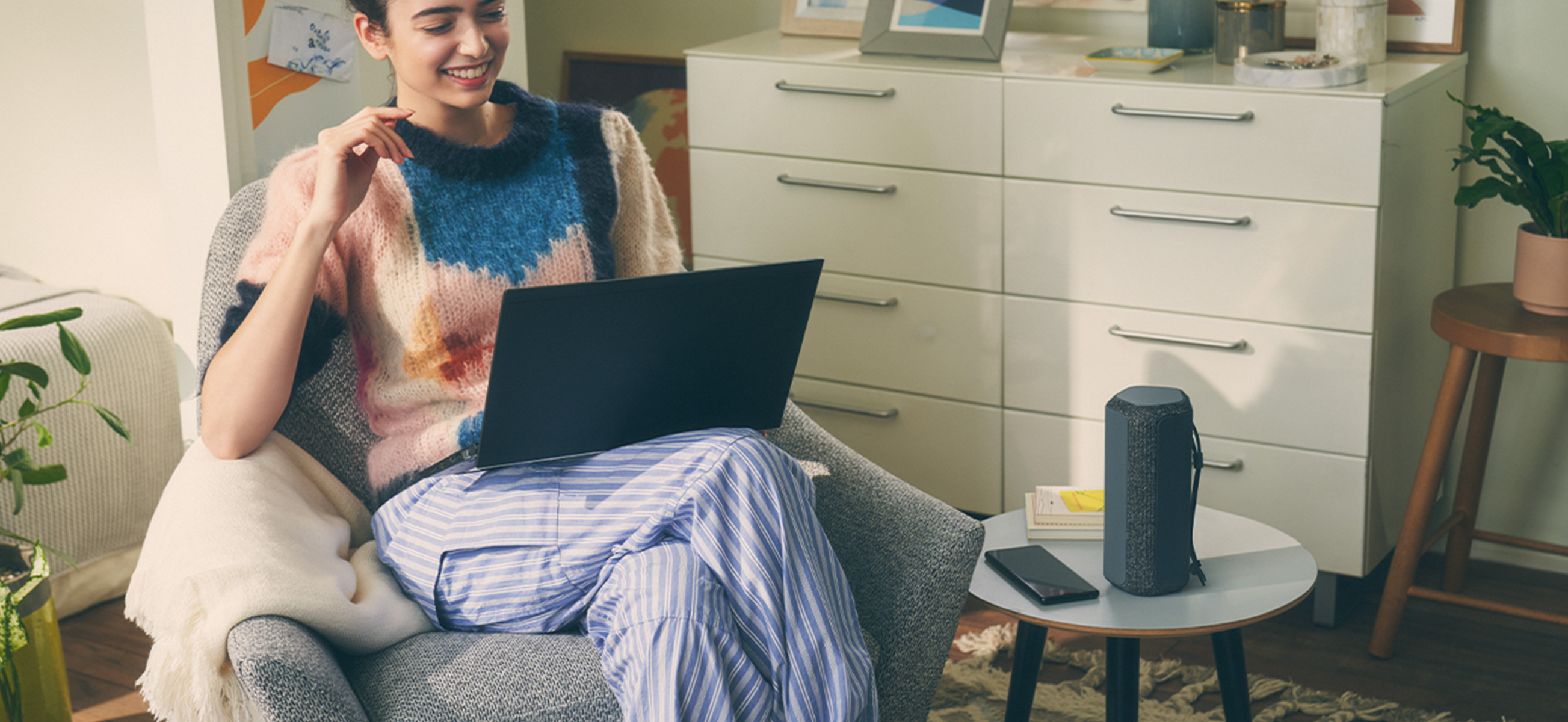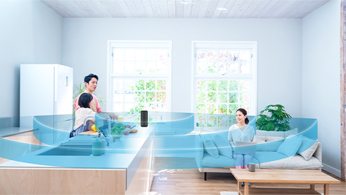 村尾:また、家ナカでもリビングとキッチンを行ったり来たりしながら作業する際などに同じ問題が起こることがあります。そこで、「SRS-XE」では、聴取位置を問わず、どこにいても皆が同じ音体験を共有できる、広いリスニングエリアを実現することを目指しました。同じ音質・音圧で聴ける範囲が、一般的なワイヤレスポータブルスピーカーと比べてかなり広くなっているのが特長です。