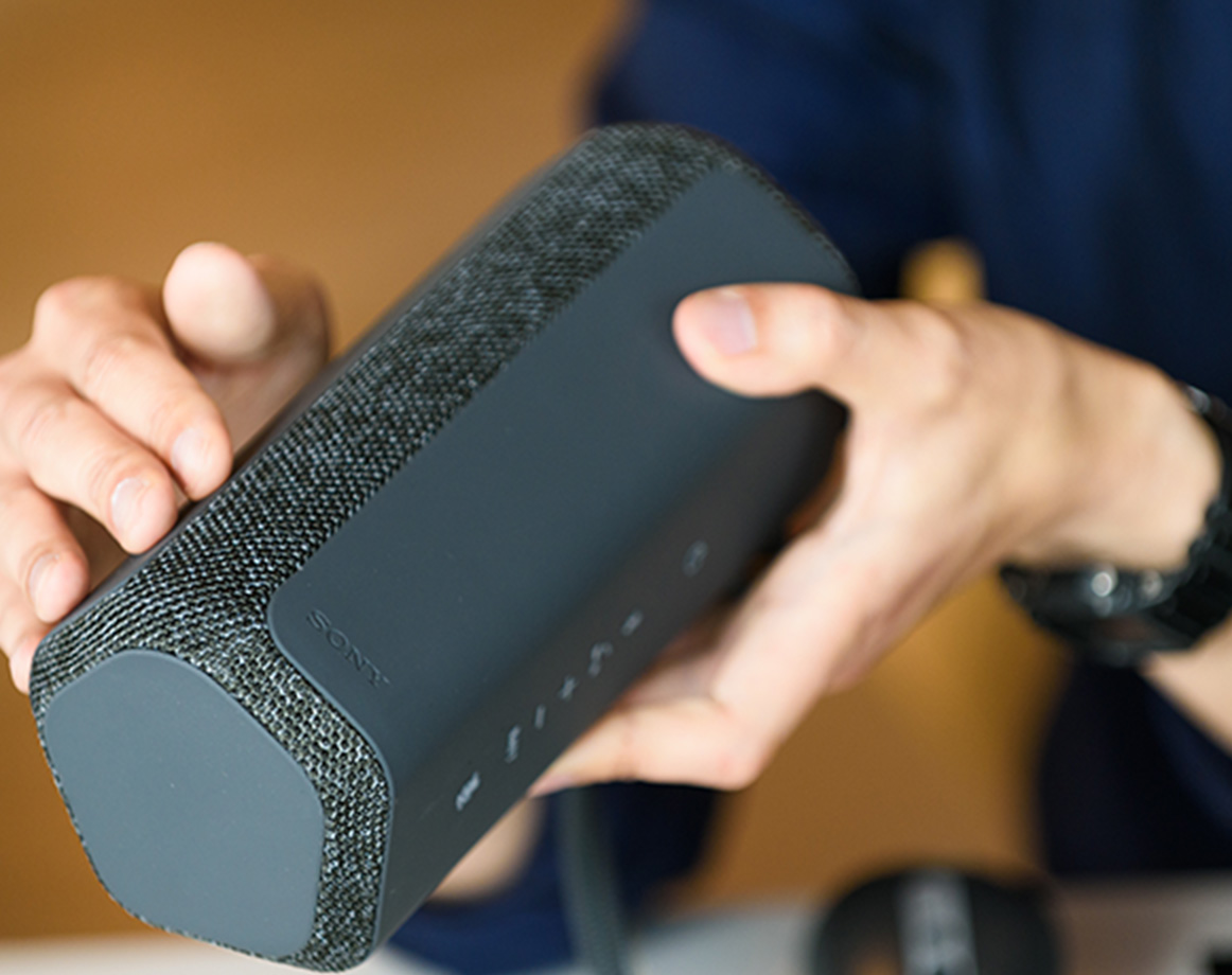 村尾:どちらも一般的なワイヤレスポータブルスピーカーと比べて広いリスニングエリアを実現するという点は共通ですが、『SRS-XE300』は、より大きなスピーカーユニットを搭載することで迫力あるサウンドを楽しめることが特長です。対して『SRS-XE200』はストラップも付属したポータビリティ重視の選択肢となります。