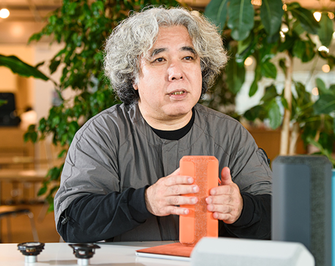 小宮山:継ぎ目のないひと繋がりのシリコン素材とファブリック素材でできているところにも注目してほしいですね。当初からデザイナーとしてはこうしたいという思いがあったのですが、きっとどこかに分割線が入ったり、ネジ穴が開いたりするんだろうなと半ば諦めていたところもありました。ところがデザイン案を見せたところ、これだけのオリジナリティと説得力を備えたデザインなのだからぜひそのまま実現しようと、遠藤らメカ設計のチームががんばってくれたんです。
