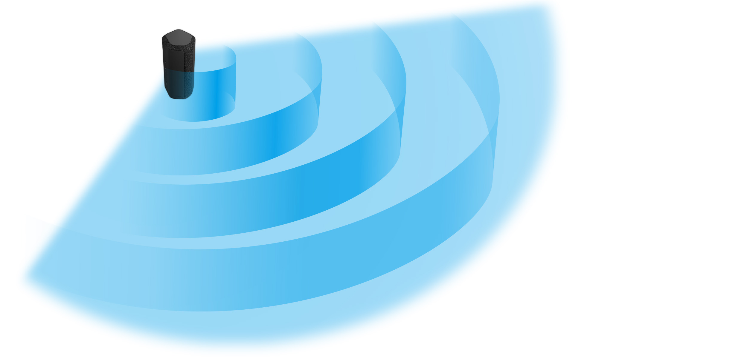 長濱:Line-Shape Diffuserは「線音源」をコンパクトなワイヤレスポータブルスピーカーで実現するための構造です。一般的なスピーカーは「点音源」と呼ばれる球面状に音が広がる性質を持っており、スピーカーの正面から外れると音質が変化してしまったり、距離が離れると音量や音圧が下がりやすくなる特性を持っています。