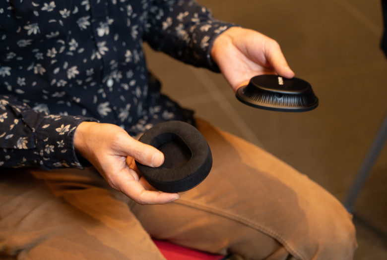 潮見:耳を覆うイヤーパッドの素材は音響特性にも大きな影響を与えるので、どのようなヘッドホンにも使えるわけではありません。また、この素材は従来の密閉型ヘッドホンで使われている合成皮革素材と比べると遮音性は控え目なので、レコーディングの現場などではヘッドホンから漏れ出した音をマイクが拾ってしまう問題があります。今回、この素材を採用できたのは、『MDR-MV1』がレコーディングブース内で使うものではなく、収録した音をミックスする時などを想定したもので、音漏れを気にしなくてよかったからという事情がありました。