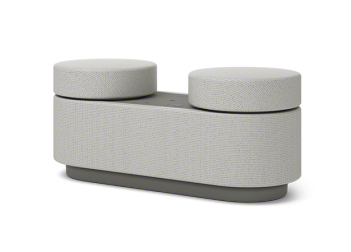 なお、底面や天面など、布に覆われていない部分についても、触った時の手当たりの良さや、硬いテーブルの上に置いたときの接触音などをソフトにしたいという狙いから、シリコン素材を用いています。