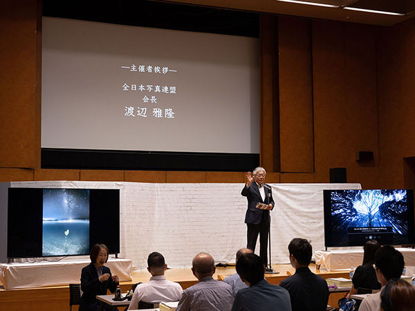 式典冒頭では、主催者挨拶として、全日本写真連盟会長の渡辺雅隆氏が登壇。渡辺氏はまず「この凄まじい暑さの中、式典にご参加いただいたことを感謝します」と切り出し、近年の異常な暑さや気候の変化に触れ、「皆さんの素晴らしい写真を通して、多くの方々が自然環境、地球環境に思いを馳せていただければ、これほどうれしいことはありません」と、コンテストに込められた思いを強調します。