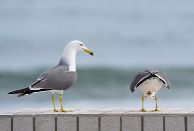 この作品を見た審査委員全員が思わず笑ってしまったという作品。全日本写真連盟賞は他とはひと味違う写真を選ぶという選考基準がありますが、本作品はその基準に十分応えるものでした。いかつい顔のウミネコが、かわいらしく、ユーモラスに表現されており、隣にいる普段通りのウミネコとの構図も高評価に繋がりました。