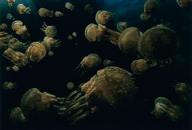 三重県にある汽水湖、白石湖で撮影しました。湖に潜った瞬間、無数のタコクラゲが視界いっぱいに広がる幻想的な光景を、一匹一匹の立体感透明感を生かして表現しました。いつでも見られるわけではない神秘的な雰囲気を伝えたいと考え、クラゲがバランスよく画面に収まる位置を探し、太陽光の差し込みや影にも細心の注意を払っています。水中では大きく重いハウジングが必要ですが、α6600のコンパクトさとバッテリー持ちの良さは大きなメリットです。