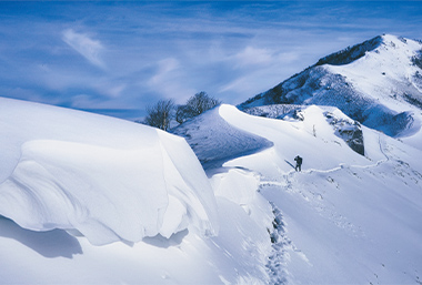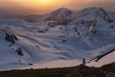 普段から山の朝日を中心に撮影をしています。この作品では張り出した雪庇を大きく見せることで冬の自然の厳しさを表現してみました。また、人物を点景として入れることにより写真を引き締める効果を狙っています。