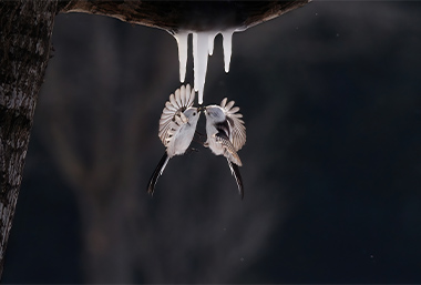 厳冬期に見られる樹液の氷柱が何本も生じる珍しい状況の中、樹液を舐めにきたシマエナガが、偶然にも2羽向かい合わせになった貴重な瞬間を捉えました。そして、そんなお気に入りの一枚に出会えた時には、いろんな方に見てもらいたいという気持ちから本コンテストに応募するようにしています。『第37回「日本の自然」写真コンテスト』ではデジタル部門最優秀賞 ソニー4K賞をいただくことができました。現在はα1に加え、α1 IIも愛用中。どちらもAFの追従が優れており、生き物の撮影には欠かせない機材だと思っています。