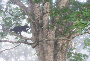 近年、市街地に出没し世間を騒がせているツキノワグマですが、もちろん人里離れた奥山でひっそりと暮らしているクマたちもたくさんいます。そんな、身近なようで遠い存在であるツキノワグマに興味を持ち、長年観察を続けてきました。この森は広い林間の中にミズナラやブナ、シナノキの巨木が立ち並ぶ、昔から人と自然が共生してきた場所。幻想的な雰囲気の中で、森の主であるツキノワグマと出会うことができ、この作品を撮影することができました。カメラはα7R Vとα1を併用中。野生動物が活動しやすい早朝や夕刻の薄明時や薄暗い森の中で撮影することが多いので、広いダイナミックレンジや高感度に強いところ、AFが優秀なところが気に入っています。