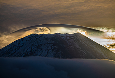 「富士山」と「富士と名の付く百名山」の撮影に取り組み続けています。この作品は富士山に発生する雲の不思議と色彩を捉えたいと考え撮影。カメラも出さずに見ているうちに徐々に姿を現し、この年一番の富士劇場となりました。αはミノルタ時代から愛用し続けており、今ではすっかりメジャーなカメラメーカーになったことを喜んでいます。