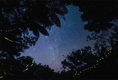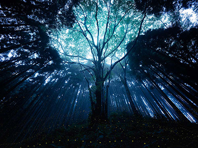 何度も足を運んでいる西表島の豊かな植生と美しい星空、ヤエヤマヒメボタル、これら3つの要素を一枚の写真の中で収めることで、西表島の自然のエネルギーの存在感を伝えることを構想して撮影に成功した作品です。