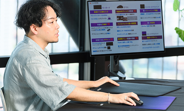 西田: その通りです。両者のターゲットとする層に求められる性能を個別に吟味して、摩擦力以外のサイズや厚み、素材などを最適化しています。実は商品企画チーム内にマウスパッドのマニアがいて、素材選びから一緒にやっているんですよ。