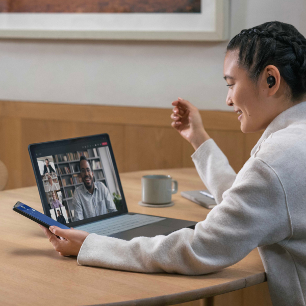 例えばPCでオンライン会議に参加する場合、これまではスマートフォンのペアリングしている状態からPC設定画面を通じてヘッドホンをつなぎ直す必要があったのですが、マルチポイント接続を使うことで、PCにも同時に繋いでおくことができるので、スマートフォンとの接続を切断する必要はありません。元々スマートフォンの音声を聴いていても、PCでオンライン会議へ参加すると自動的に音声が切り替わり、切り換えを意識することなくそのまま使い続けることができます。またマルチポイント接続ではスマートフォンやPCのOSに寄らず使うことができるので、多くのデバイスでお楽しみいただけると思います。