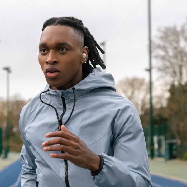 長谷川:「骨伝導センサー」と「AIによるノイズ抑制技術」を組み合わせることで、高度な「ボイスピックアップテクノロジー」を実現しています。骨伝導センサーは装着者の体内の振動(声)を拾うセンサーのことで、周囲の騒音や風による影響を受けずに発話信号を得ることができます。このセンサーとマイクで得た音声をAIによるノイズ抑制技術と組み合わせることで、周囲の騒音の状況・装着者の発話の有無を的確に捉えることができ、環境ノイズを抑制しながら装着者の声「だけ」をより高品質に相手へ届けられるようになります。