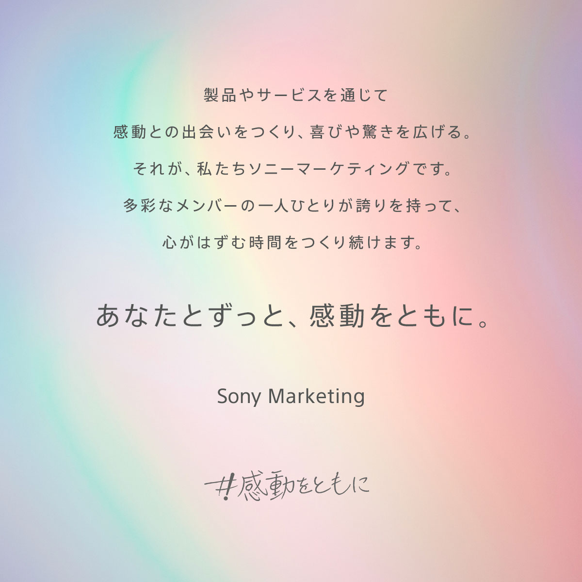 製品やサービスを通じて感動との出会いをつくり、喜びや驚きを広げる。それが、私たちソニーマーケティングです。多彩なメンバーの一人ひとりが誇りを持って、心がはずむ時間をつくり続けます。 あなたとずっと、感動をともに。 Sony Marketing #感動をともに