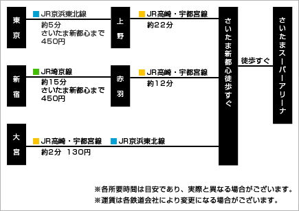 | JR京浜東北線・宇都宮線・高崎線「さいたま新都心」駅下車 徒歩すぐ |