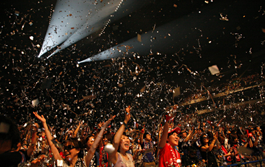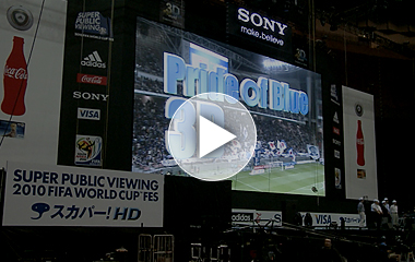 世界最大超高精細LEDディスプレイ※を使ったアーティスト3Dライブ、2010 FIFA ワールドカップ3Dハイライト映像で、パブリックビューイングの試合開始前から会場は大盛り上がり!そして、日本 VS オランダのライブ中継(2D)では、約10000人の来場者が日本代表の勝利を願って大きな声援を送り、会場は大熱狂に包まれました。