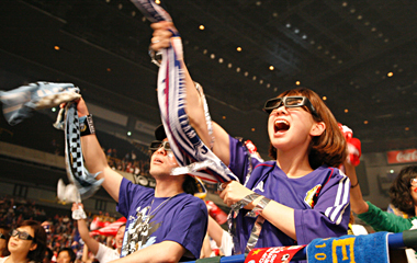 ジョン・カビラさんのかけ声とともに、「ニッポン、ニッポン!」の大合唱が起こり、試合開始直後からボルテージは最高潮。日本選手の好プレーに拍手や歓声で沸きました。