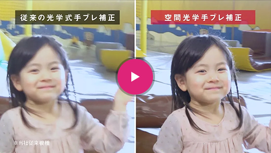 手の揺れとともにカメラ本体も揺れるため、映像も揺れ(ブレ)やすくなる手持ち撮影。ソニー独自の「空間光学手ブレ補正」は、カメラ本体が揺れても、レンズとイメージセンサーが一体となって揺れを吸収するように動くことによって安定した映像が撮影できる機能です。さらに、ハイビジョン撮影時に利用できる「インテリジェントアクティブモード」では、5軸方向にレンズを動かしてブレを補正するため、より安定した映像を撮影できます。