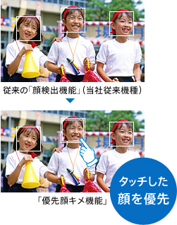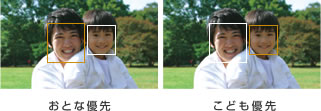 | 被写体が大人か子どもかを自動で判別してどちらかを優先撮影。上手に撮影するのが難しい子どもの笑顔をたくさん撮れます。 |